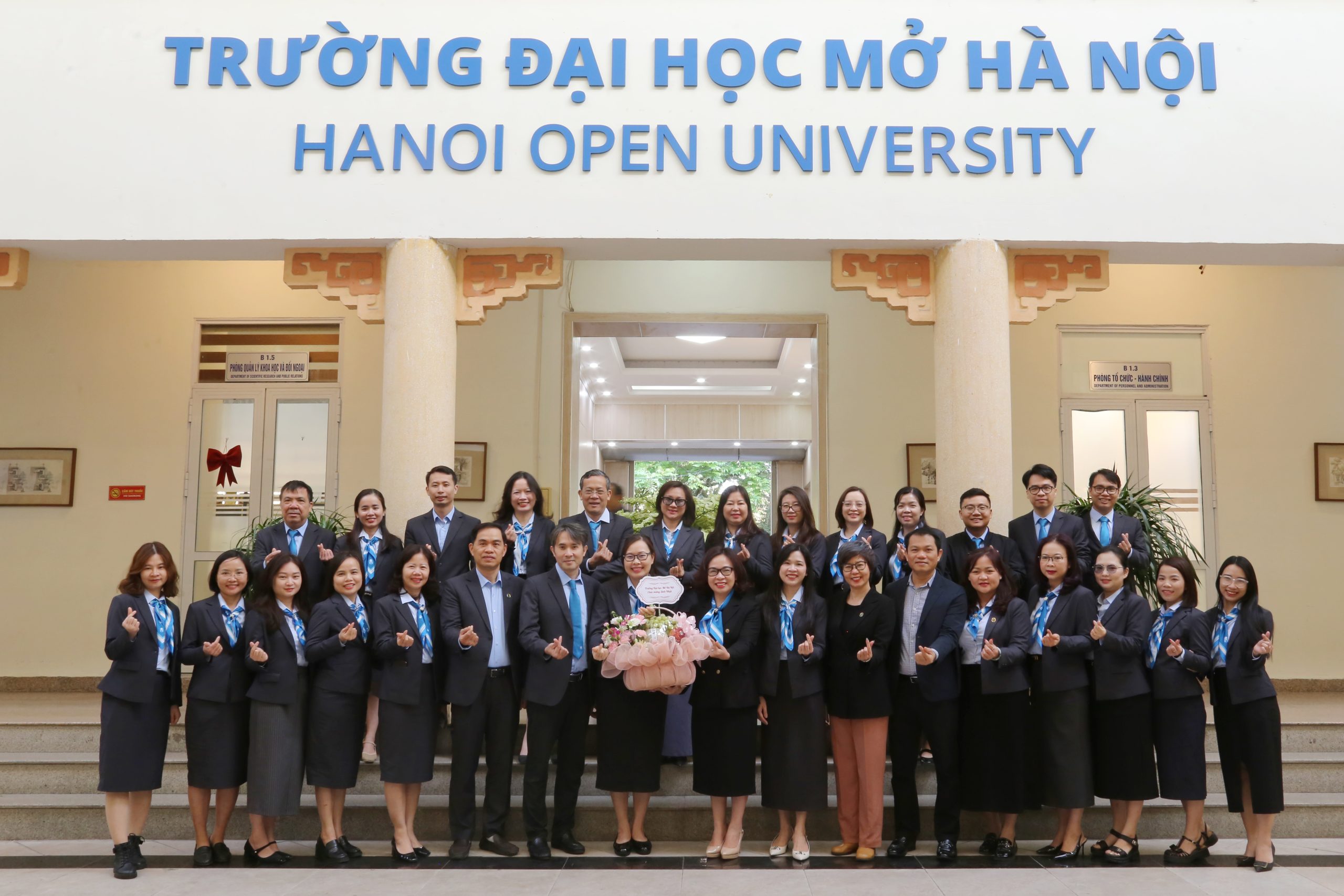 Ban lãnh đạo nhà trường cùng cán bộ, giảng viên Viện Đào tạo và Phát triển Học tập Suốt đời chụp ảnh lưu niệm tại đầu cầu Hà Nội nhân dịp kỷ niệm 1 năm thành lập Viện (10/03/2025 – 10/03/2026).